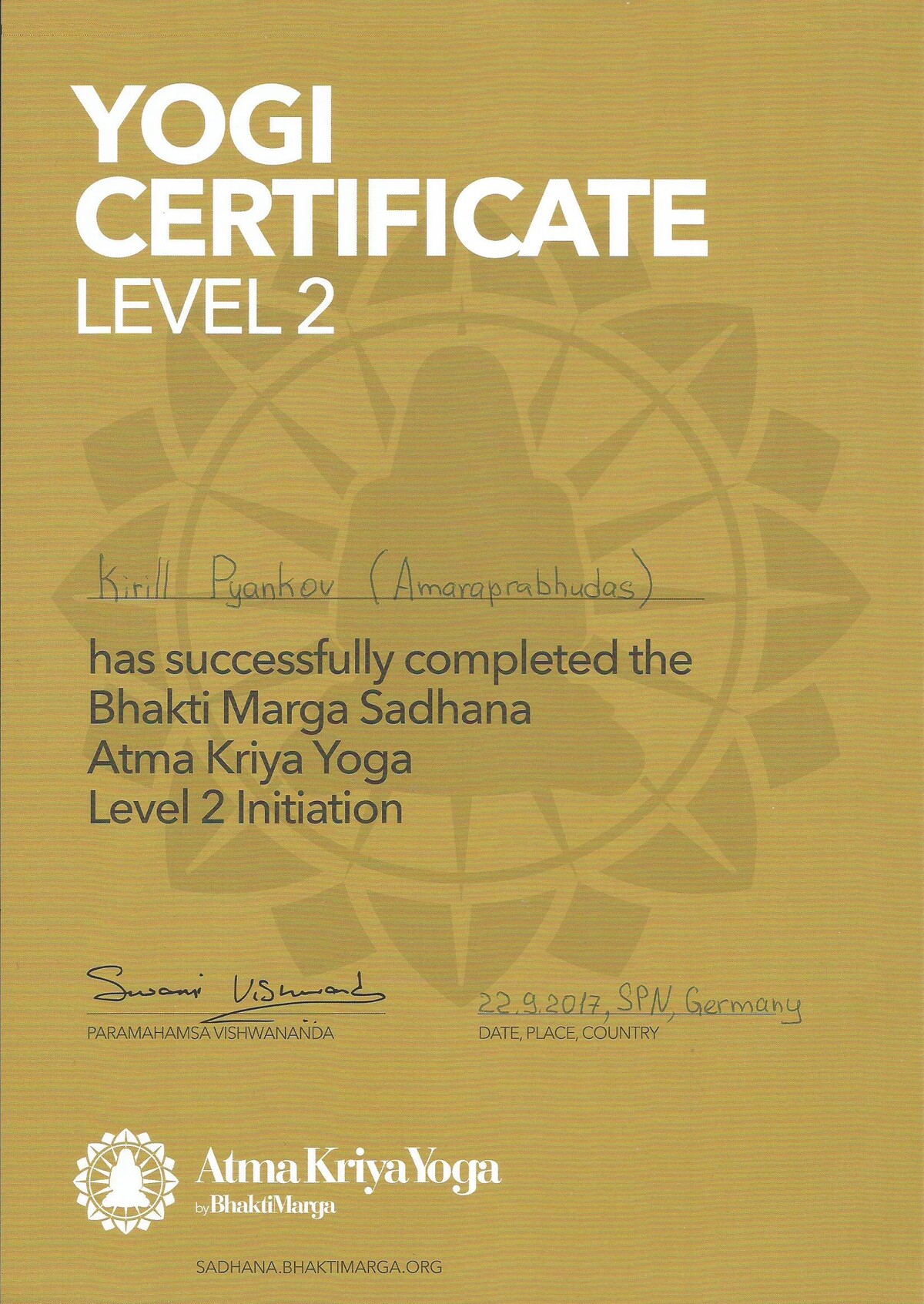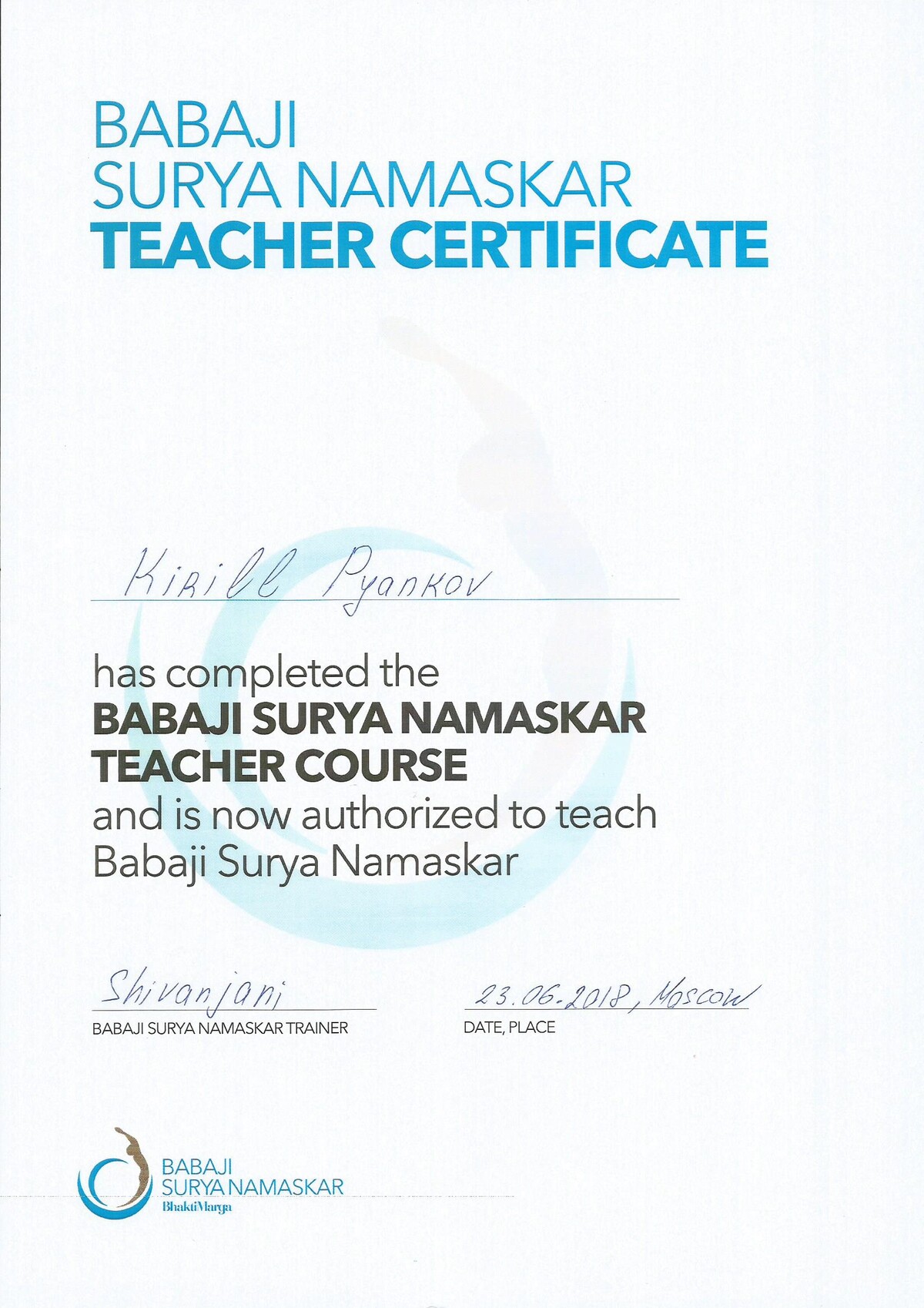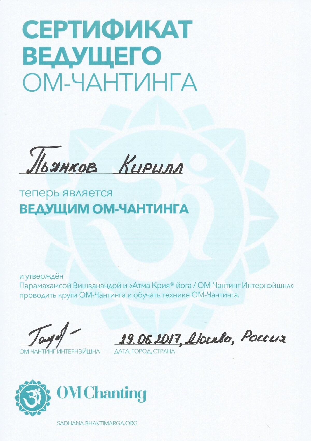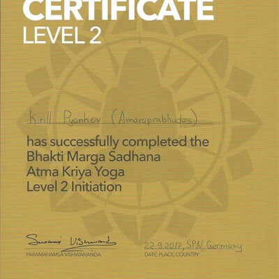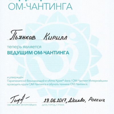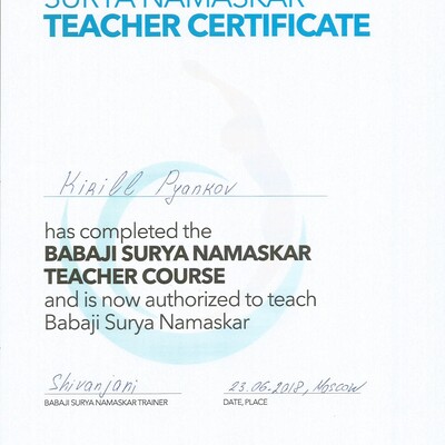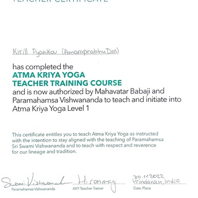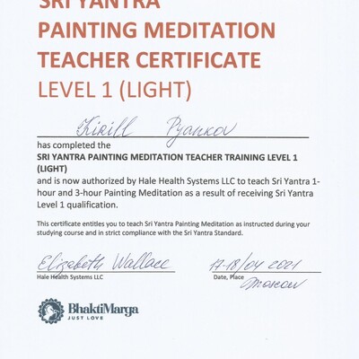 Сертифицированный преподаватель по Атма крия йоге, Бабаджи Сурья-намаскар, медитативному расписыванию Шри Янтры