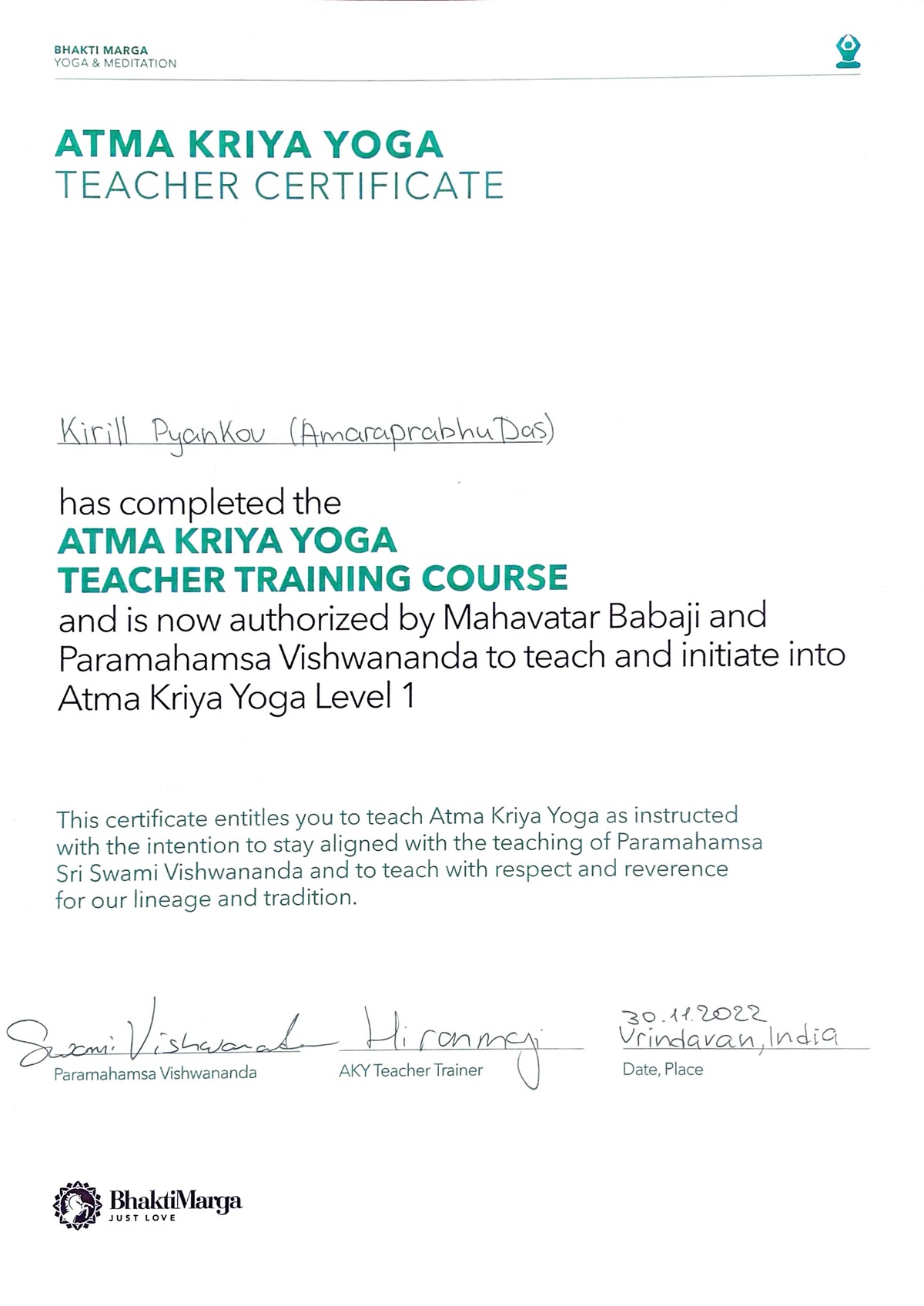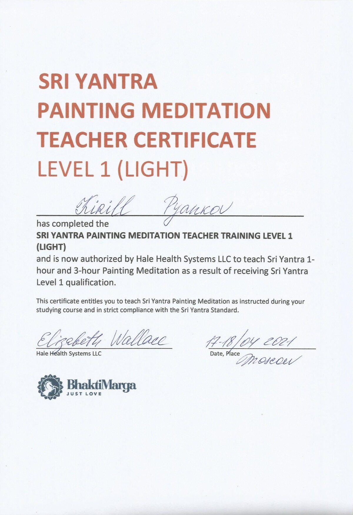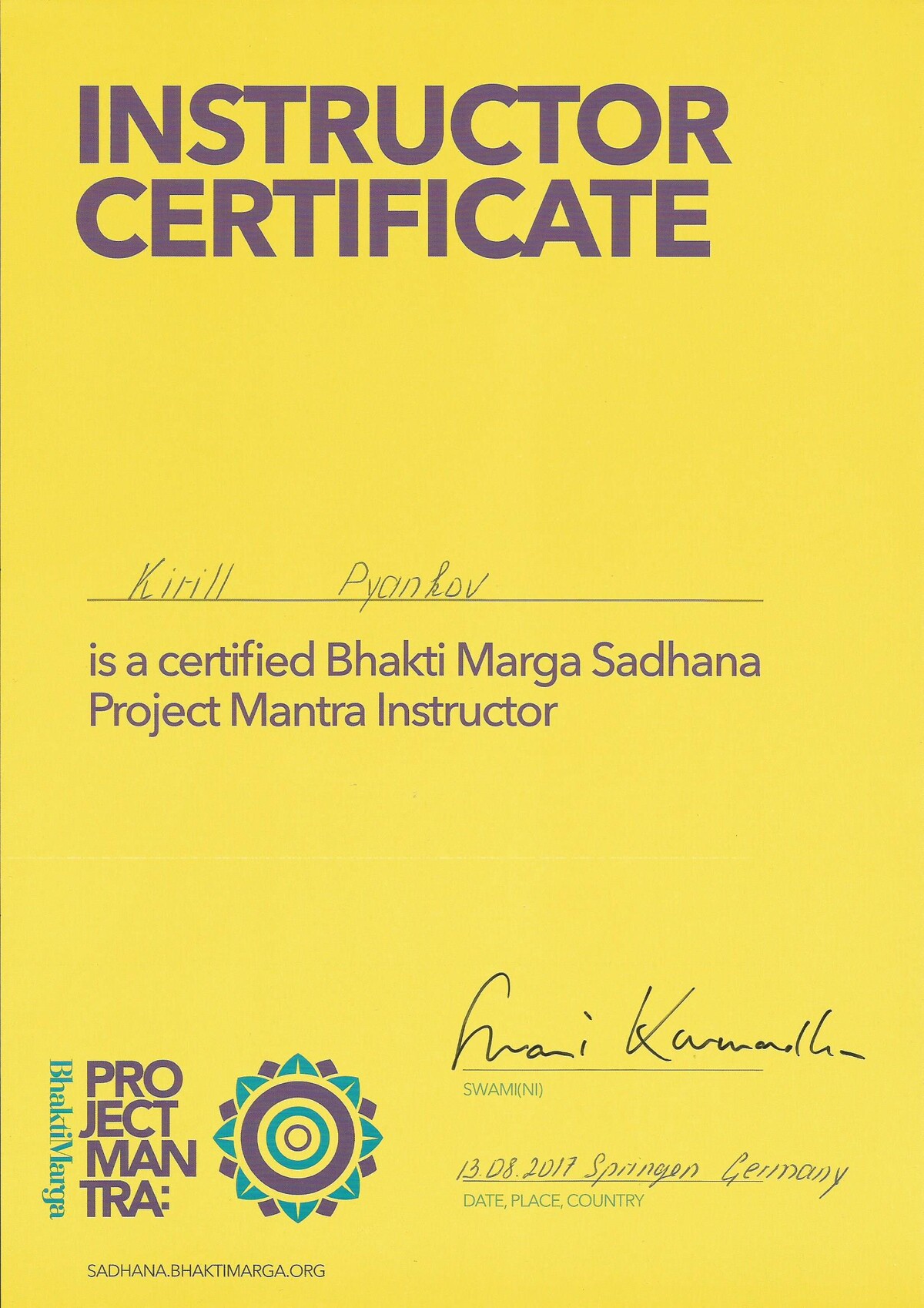 Сертифицированный преподаватель по Атма крия йоге, Бабаджи Сурья-намаскар, медитативному расписыванию Шри Янтры